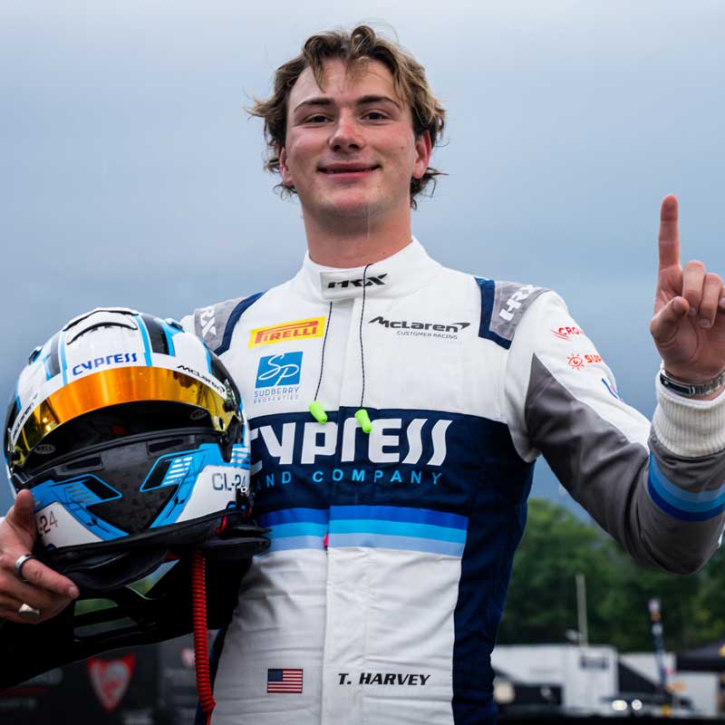 Now competing in the McLaren Trophy America series with Forte Racing and title sponsor Cypress Land Racing, Harvey brings both versatility and precision to the grid. His racing IQ, forged from both the desert and the tarmac, combined with his aggressive yet calculated driving style, make him a name to watch as his career accelerates.