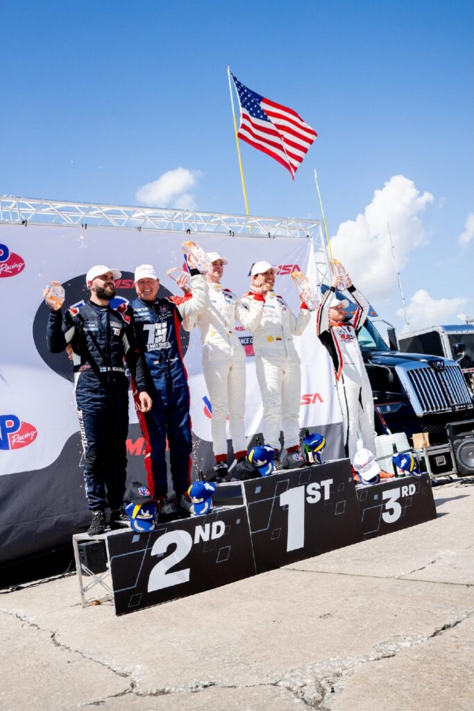 “It was great to get back on the podium thanks to some incredible driving by Patrick Kujala,” Thienes said. “Patrick showed off his great driving skills keeping the car at the front end of the race with a damaged wing. The team did a great job to put the race car together last minute. We had an incredible result this weekend considering we just pulled the new car out of the box without any testing. We hope to do better at the next race after we’ve had some time to work with the car. As always, Pete Jacobs provides a very competitive race car and, in this case, he was able to provide a very good car with no testing.”
